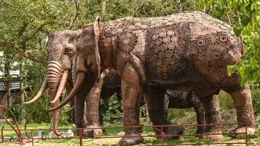 ‘जंगल ट्रेल’ पार्क 8.5 एकड़ में फैला हुआ है, जिसमें 700 से अधिक जानवरों की कलाकृतियाँ हैं। इनमें हाथी, जिराफ, शेर, चीते, हिरण, रंगीन पक्षी, कंगारू, मगरमच्छ, यहा तक कि डायनासोर भी शामिल हैं। इन मूर्तियों को बनाने के लिए ऑटोमोबाइल के पुर्जे, नट, बोल्ट, जंजीरें, ईंधन टैंक, पाइप और अन्य बेकार पड़ी धातुओं का इस्तेमाल किया गया है। प्रत्येक मूर्ति में कारीगरों का कौशल और उनकी की गई मेहनत साफ-साफ दिखाई देती हैं।