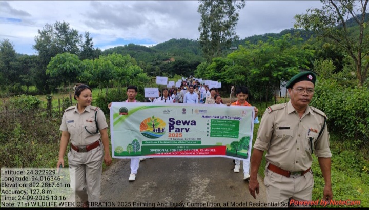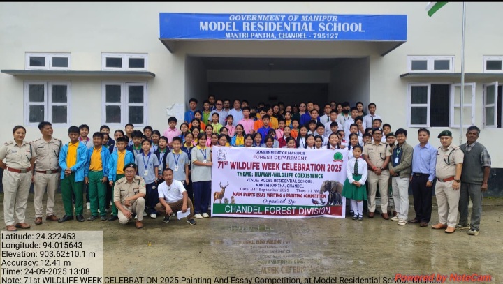 71वें वन्यजीव सप्ताह समारोह 2025 के उपलक्ष्य पर 24 सितंबर को राज्य के विभिन्न जिलों में मणिपुर केंद्रीय वन प्रभाग द्वारा “वन्यजीवों के साथ जीवन” और “मानव-वन्यजीव सह-अस्तित्व” विषय पर जिला स्तरीय निबंध लेखन और चित्रकला प्रतियोगिता का आयोजन किया गया। यह कार्यक्रम मणिपुर वन प्रशिक्षण संस्थान, लुवांगसांगबाम में आयोजित किया गया, जिसमें सेंट जॉर्ज हाई स्कूल के 200 से अधिक छात्रों ने भाग लिया।