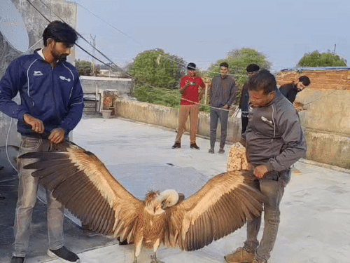 बीते सोमवार को राजस्थान के अजमेर जिले के पीसांगन इलाके से हिमालयी क्षेत्रों में पाए जाने वाले एक अत्यंत दुर्लभ और विशालकाय हिमालयन ग्रिफॉन गिद्ध को बचाया गया। यह पक्षी अपने प्राकृतिक आवास से हजारों किलोमीटर दूर भटककर यहां पहुंच गया था, जहां स्थानीय लोगों की सूचना पर वन विभाग और एनिमल रेस्क्यू टीम ने तत्परता दिखाते हुए उसका सफल रेस्क्यू किया।